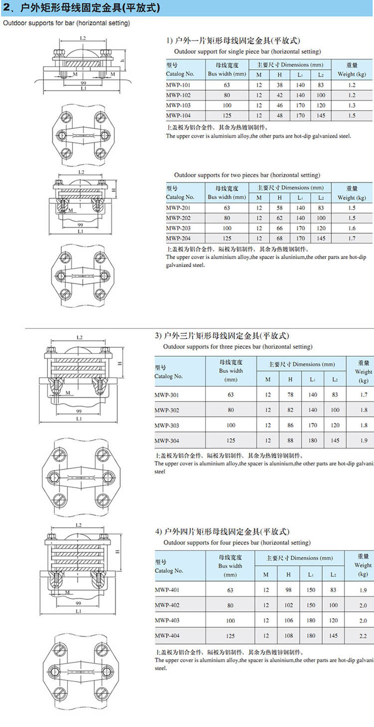 MWP-101 102 103 104戶外一片矩形(xíng)母線固定金(jīn)具(jù)(平放式)熱鍍(dù)鋅